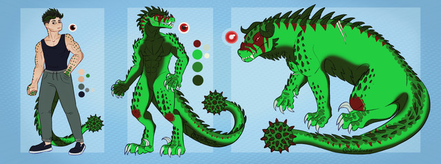Skills: he is able to breathe fire and use it at his will to make great movements, he also uses martial art techniques, among his favorites is Kung fu, he is also capable of flying at high speed and without depending on wings, his fangs are very strong and resistant, nothing prevents them from ripping, skinning or biting any type of material.