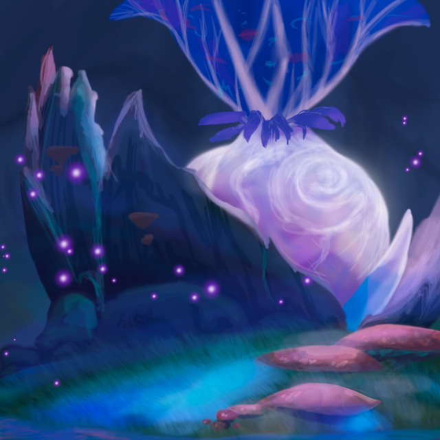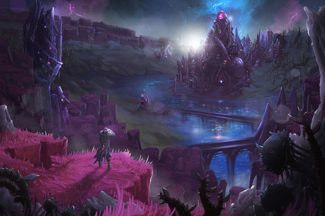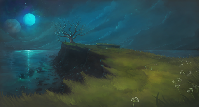 #blue #castle #dark #fantasy #grass #green #landscape #night #path #road #trees #bleak #fantasylandscape