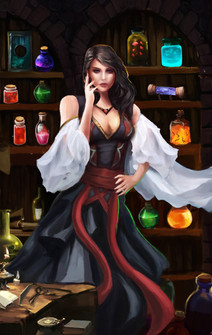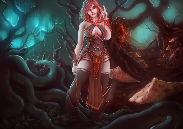 #character #dark #digital #fantasy #krita #mage #red #vials #woman #blonde #blondehair #digitaldrawing #fantasycharacter #fantasywoman #firemage #redclothes #kritadrawing