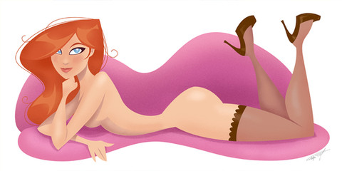 Uh, I wasn't really trying to draw anyone, but she turned out kinda lookin' like Jane Jetson. I like it though. The stockings especially. My regular skin color was running out so I improvised.Ink and Copic.