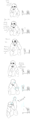 When my brother fought Sans he used the torn notebook instead of the knife, and this is what I thought Sans' reaction would be I guess...