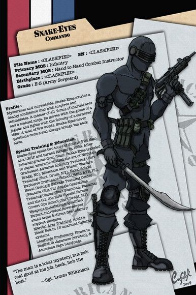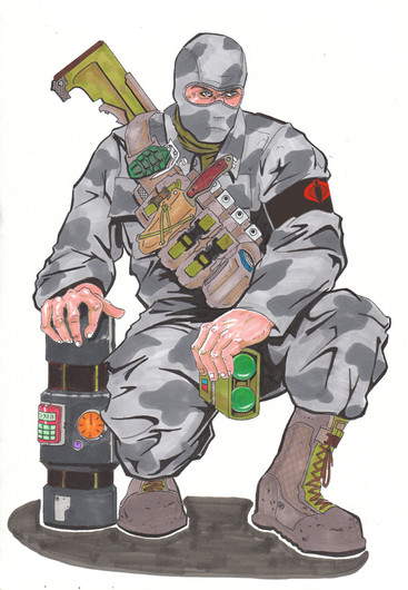 I like this a lot, nice work. You`ve got him pictured how he originally was created (Action Force world) as an Explosive, Espionage, Infiltration, Assassination expert rather than when GI Joe (Larry Hama moreso) started the crusade of Ninja-fiying everyone).