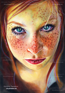 This drawing is delightful. She is stunning and I love your use of complementary colors as highlighting. You fall into those eyes forever.
