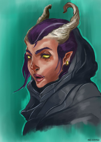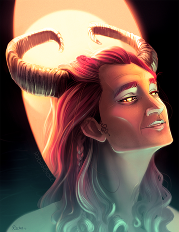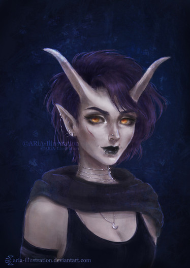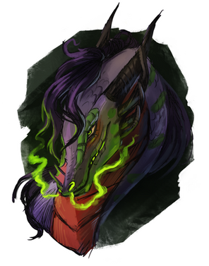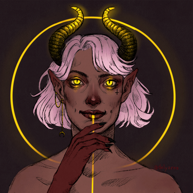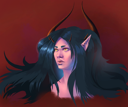 #color #ears #eyes #face #girl #glowing #hair #horns #portrait #purple #yellow