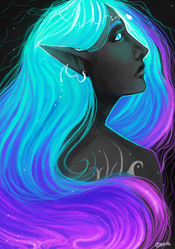 Done in time from midnight till 2:30 PM. I try not to stay that late too often.... but when I do it's time of trying. Playing around with colors and just letting tired brain to produce things without previous thoughts or visions. In result the pic just easily flows. Hand practices, mind doesn't bend and try hard to imagine and think....the results is usually easy, simple concept, but it is very soothing xD tho by the morning I'm always like: The heck I drew last night and why I didn't choose to do me a favor and rest xD