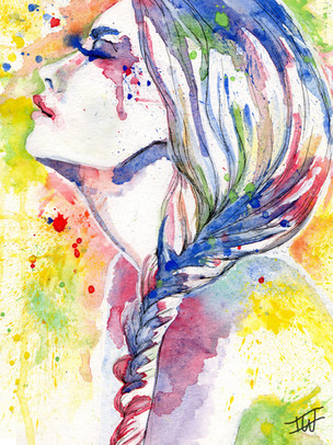 Thanks! Surprisingly the watercolor hair was the easiest part. It was drawing the face and painting the shading that was the hardest. Lol.