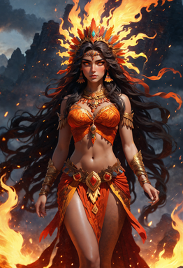 #ai #anime #ash #characters #dress #fantasy #female #flame #goddess #lava #volcano #aiart #fire #tattooedwoman #aiartcommunity