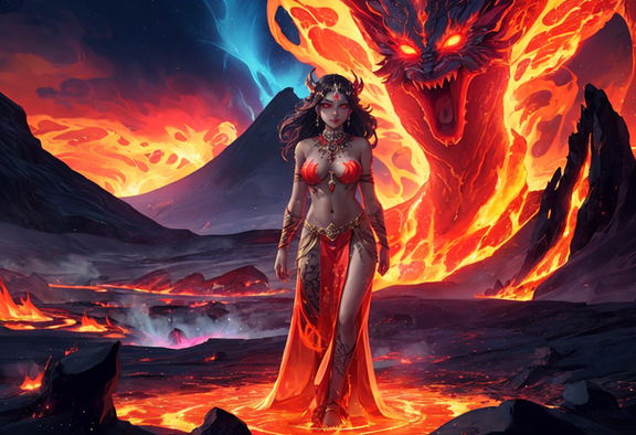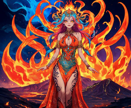 #ai #ash #characters #dress #elemental #fantasy #female #flame #hot #lava #magic #winged #aiart #fire #tattooedwoman #aiartcommunity