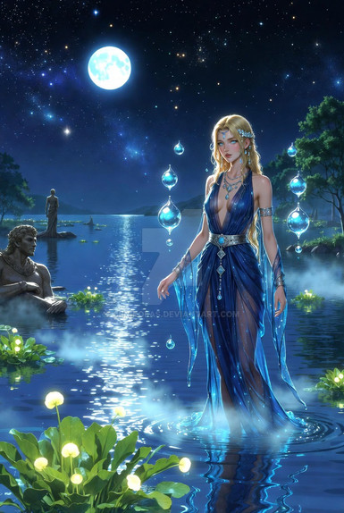 #ai #bride #etheral #fantasy #female #forest #goddess #magic #moon #moonlight #nighttime #princess #water #aiart #fantasycharacter #aiartcom