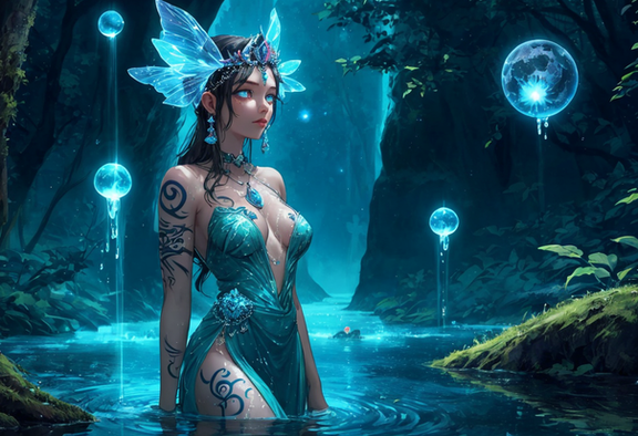 #ai #elemental #etheral #fairy #fairytale #fantasy #forest #goddess #magic #moonlight #nighttime #vibrant #water #aiart #fantasycharacter #aiartcommunity