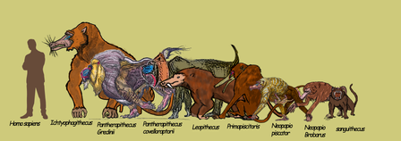 Phobopithecines is a family of monkey descendants of gelada created by . The savannah phobopithecus lived in the late Xenocene, 85 my after anthropocene.This specie of phobopithecus is adapted to survive in tropical grasslands, like its cousins, it's an omnivore, eating plants and insect, and sometime small mammals, like modern chimps, but they are not specialized browsers or terrifying predators.