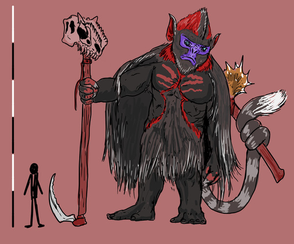 he IS pissed , it's a very aggressive creature, to fight against a thing like the ichtyophagithecus, it has to be crazy.