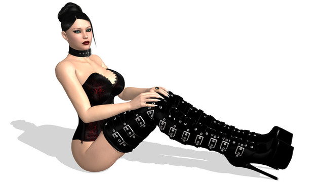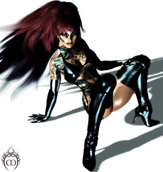 Very sexy redhead...how could I not love this?? Excellent texture effects on the latex/leather, and such a sweet face for such a naughty pose!! --AG