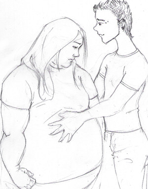this is really just an example of mpreg to show a potential commissioner but I liked how it came out! I'm not really 'into' mpreg but I do think there's something very endearing about it, especially when coupled with a female pregnancy like this. Like an extreme version of 'sympathy weight'. Related content