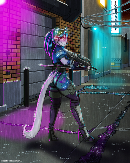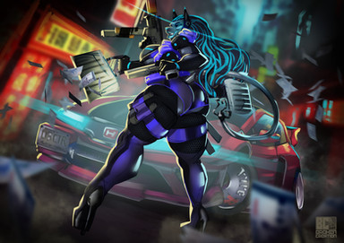 #cyberpunk #gun #originalcharacter #neon #assassin #bimbo #busty #female #heels #latex #leather #platformheels #scifi #skintight #slutty