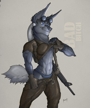 #busty #cleavage #cyber #cyberpunk #cyborg #dog #gun #mecha #slutty #thong #weeb #mp9