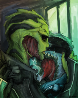 Love it but think do you can play off the joke in Mass Effect 2. Where Grunt kill Treasher Maw and even Shepard got offer for mating rights. If I need to commission it tell me how just tell the prices you set I will pay.