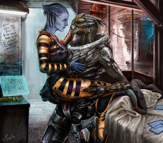 #alien #aliens #booty #bum #drell #fanart #love #romance #sexy #tights #bigbooty #sciencefiction #scifi #masseffect #sizedifference #krogan