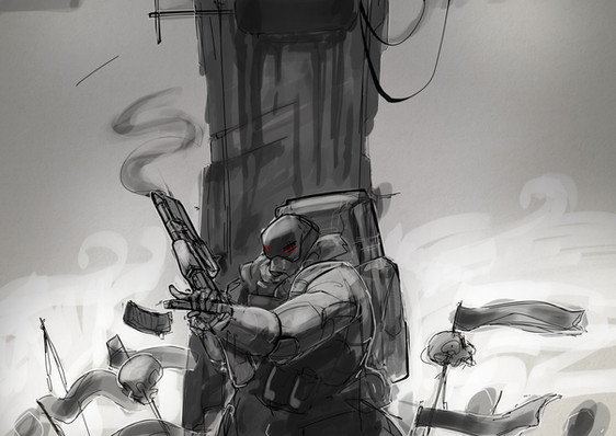 #black #cod #duty #fanart #fi #game #machine #mech #mecha #minigun #ops #painting #reaper #robot #sci #three #3 #call #illustration #sciencefiction