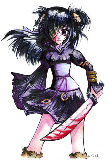 Nicle done...I like the daggers and the fact you took the time to look up the japanese character for hate....or did you?....anyways the legs look extremely skinny but her frame is also super small, so I guess it fits...
