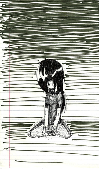hmm.. my internet hasn't broken down again yet so Im going to take advantage of it while I can. Looking at the picture you might wonder why i bothered XDWell letsee I was in the classroom by myself. Yesterday I think and feeling really really bad. Just filled negative emotions, looking out the windows and thinking about breaking them. I was listening to my iPod and I started drawing this on the back of my sketch pad. Pfft. I'd the backcover which I drew on way probably the best quality paper in the whole thing. I wish mum would stop buying my art materials in Lidl. I left part of the rings of the pad in cause I just liked it. I also liked the texture and look of the cardboard. The songs that passed from piepod-chan to my brain are listed there on the right. I like to do that sometimes. But the song the finished picture makes me think of is Pink Killer. I think it cool how i took in various songs, mixed them into the one picture and caused the picture to represent something else. maybe that's just me. The most interest part of it all was when i'd finished all my negative feelings were gone. So in a sense I managed to capture a potrait of my emotions at that particular time. I've been having alot of fun with doing that lately aswell.