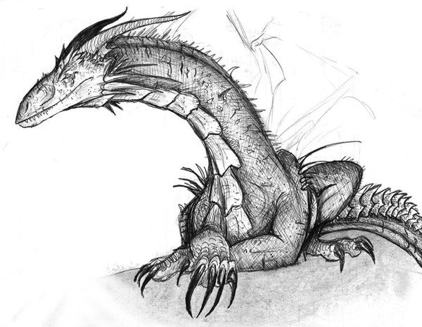 Oh goodness, it's head structure and spines are wonderful. I like the simplistic design of the dragon and the focus of details around the head area. It looks like a true predator. Yet another wonderful drawing BrokenMachine86.