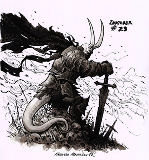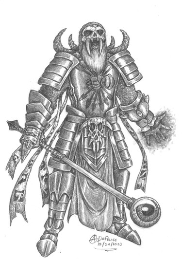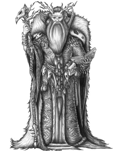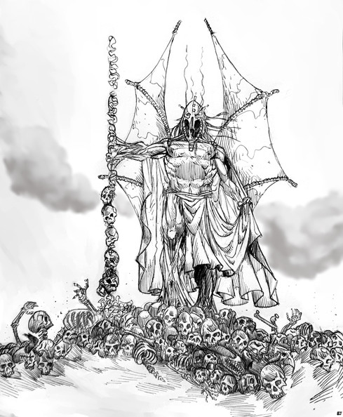 Este es de las ilustraciones que mas me gustan! si bien, abundan las lineas rectas, yo habría puesto algo de movimiento en el manto (no se como decirle) y flexionar ligeramente el brazo del cetro, pero de todas formas me encanta! esta fenomenal! felicidades :3 (el cráneo atado en el cetro es LO MAS!)