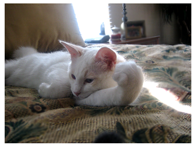You have an amateur photographer, a digital camera, and a cat that only looks good when you get a close up of her face~ a recipe for a cruddy picture.