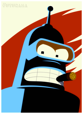 Okay, so Futurama is a TV show, not a movie. But there was no "Television" category. WTF?This is based of a small blurry screencap I found online, but was drawn entirely from scratch. The text and shadow were done using the Pen tool in Photoshop, and Bender himself was drawn in with the Paintbrush tool