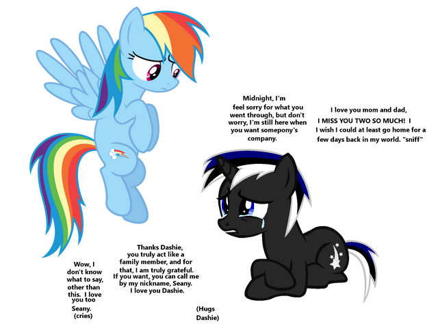 Guess like some sort of mishap happened, and now Dashie is wingless! Hope she'll pull through.Midnight Star and Copper Drop: Me