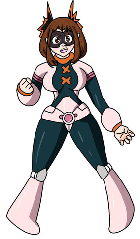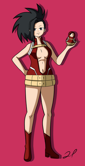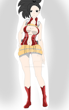 She's got a really neat design; maintaining Momo's beauty in appearance with her hero costume mixed in with Izuku's costume and gaining a bit built in muscle from him as well. Anyone who likes a little muscle on girls would love that. With that puffy green hair in her ponytail, she could almost rival Tsuyu in terms of long hair.
