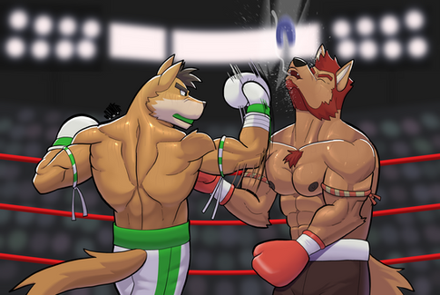 Gary had seen a televised match of Crash against an arcanine named Marin or Malin, something like that. The wolf was summarily trounced by the long-haired fox-kin. When Crash called up looking for a match, Gary thought he'd give the guy a break and help generate some buzz for him before flattening him.But it turned out Crash was not the same fighter Gary was expecting. Crash didn't come to lose and took charge of the fight, slamming the unprepared Gary across the ring. Quick and powerful, Crash was ready to take Gary down!