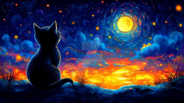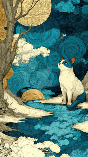 #abstract #ai #blue #cat #cats #cosmic #digital #fantasy #feline #flowing #gold #illustration #magical #moon #mystical #night #profile #silhouette #sky #space #starry #stars #style #surreal #swirls #aiart #art #aiartcommunity