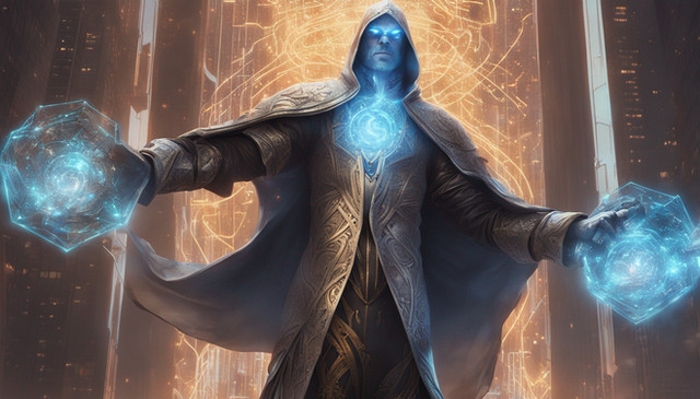 #digitalart #magic #fantasyart #wallpaper #conceptart #epic #characterdesign #portrait #warrior #fantasycharacter #scifi #mage #ai #apocalyptic #armour #blue #cyberpunk #energy #fantasy #figure #glyphs #graphite #hooded #post #technomancer #vambrace #wasteland #aiart #dailychallenge #aiartcommunity
