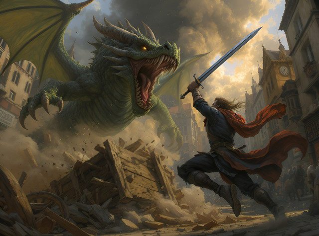 #warrior #magic #fantasyart #epic #rpg #medieval #knight #battle #digitalart #characterdesign #portrait #fantasycharacter #dragon #dnd #sword #ai #beast #claws #creature #fangs #horns #massive #monster #mtg #scales #teeth #wings #wyvern #aiart #aiartcommunity