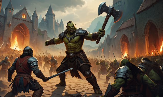 #warrior #fantasyart #fantasycharacter #orc #digitalart #barbarian #ai #artillery #assault #attacking #battle #bombardment #burning #cannon #castle #creature #destruction #fantasy #fortress #goblin #medieval #mtg #siege #smoke #walls #war #warfare #aiart #fire #aiartcommunity