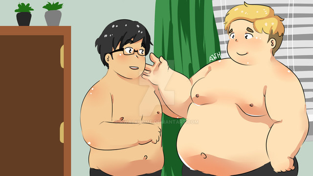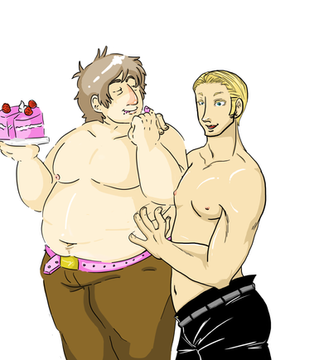 Part 10 of 16. Commission for anonymous. A weight gain series about a boy who works in a pastry shop, Milo, and the shop owner's son, Oliver. With narration provided by the beautiful ~Wei-Ting"He can't be serious," Milo thought, "He must be joking around..." And yet, Oliver was not just joking around. On the contrary, he had fallen for Milo the very moment he walked into La Crème. He was blond, tall, but not too tall, and male to boot for, yes, Oliver's preferences lied with members of his own sex. What wasn't to like? Of course, the real bonus was Milo's gluttony - Oliver had no problem in admitting that he liked bigger boys and he had immediately seen Milo's potential. Having secretly watched Milo stuff himself with pastries that first night, Oliver decided; Why not help him along? A tasteless herb, crushed and sprinkled into the day's leftovers, and later, the box of pastries Milo sometimes took home ensured his appetite. And so, Milo grew, and with him, Oliver's longing for the blond. Having announced his affection, and deciding that Milo was, perhaps, still confused about how he felt towards him, Oliver stayed one evening after La Crème closed, platter of pastries in hand...