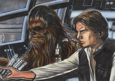 This is awesome! Loooove the expression on the guy on the right! Really phenomenal job on the fur! Both Chewie's and the ewoks'. White gel pen for the highlights? Excellent details! You do such great work, I am so jealous. Keep it up!