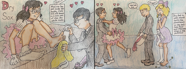 With Tussie's socks all muddy, not to mention her own, Millie is forced to suspend the enchantment on the little girl's princess socks. While the socks are being dried after washing, the two girls sit back to back, thoroughly disgusted with each other. They are still that way when Tussie's mom, Linda returns from work. Oh boy! Linda doesn't need the ensuing turmoil of complaints that is coming her way after a long evening working at Webber's!Related content