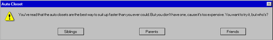 But this character will know your character no matter what. So, as you choose an option tell me the gender and name of your character as well as the gender and relationship of the other character you want.