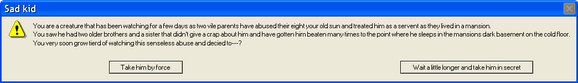 (I really don't think I can do an RP as well with your... "characters"... because I like quite a bit of realism in my RP's (when it comes to certain things). And I don't think I can take your character seriously enough to be able to come up with a decent RP.)
