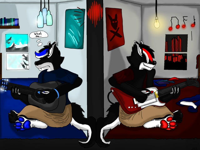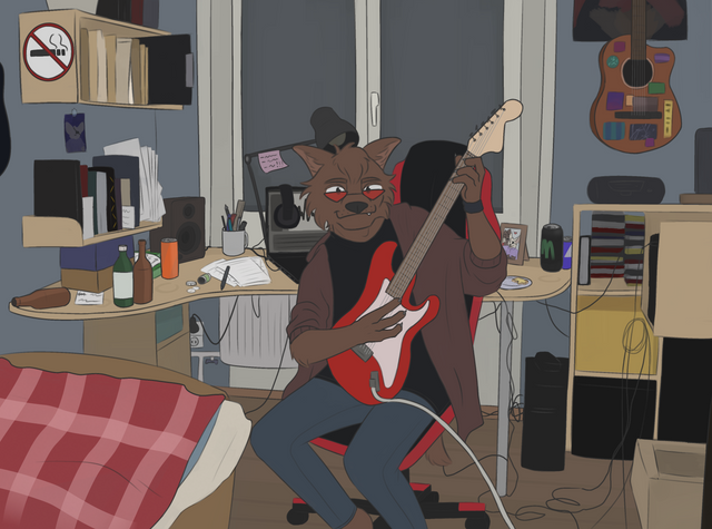 #bass #chill #dragon #drolf #guitar #heston #hybrid #laptop #mace #music #paws #poster #wolf #yeen #album_cover #bruiseryeen
