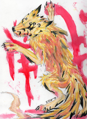 Looks excellent, I wish my school doodles looked like that. I love the semi-background, though I thought the shooting star was a lance through the wolf's neck when I first glanced at the thumbnail o_o;