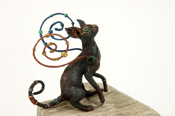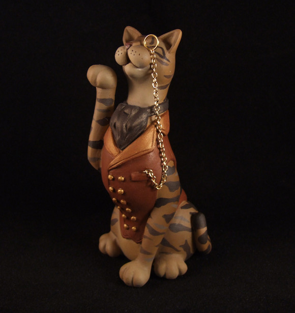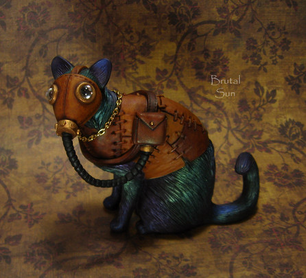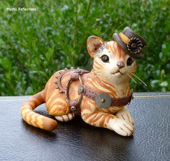 This steampunk tabby cat was sculpted from polymer clay. He was then painted using acrylics and soft pastels. I hope you like him! For a short time, he'll be available to bid on HERE .Related content