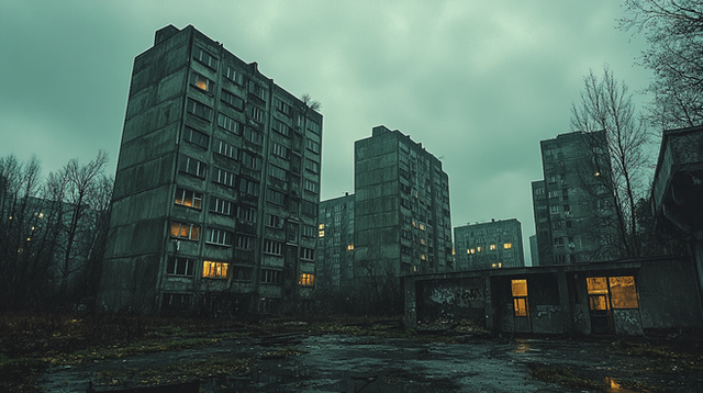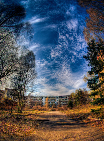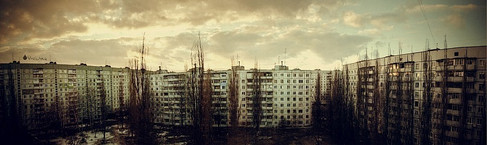 Lazareva str. in Pripyat, Zone of alienation, Chernobyl area 103 mR/hother side of this building