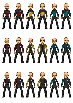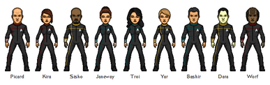 The suits developed for the new Hazard Teams assigned to the "Titan Expedition" into the Gamma Quadrant (of which the U.S.S. Voyager was a part of) in 2379.The senior staffs of the Mission Gamma ships can be found here:Β bry-sinclair.deviantart.com/arβ¦