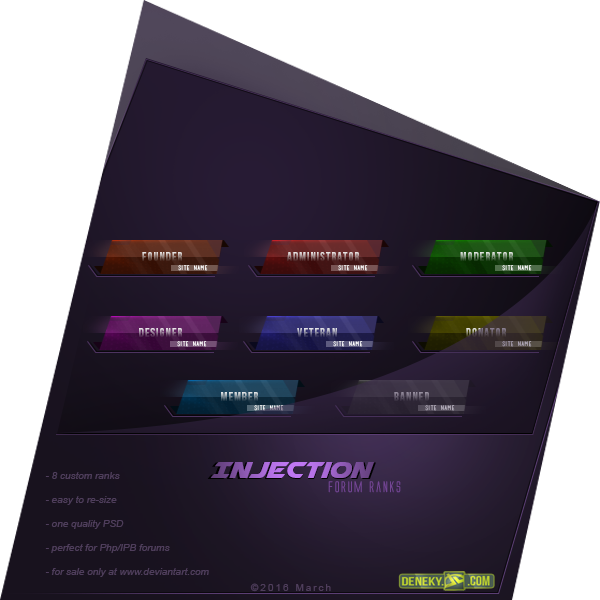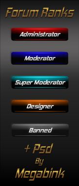 A nice forum rank set with colored inlays that will go with virtually any forum.PSD and FONT file included for easy editing to make it your own!