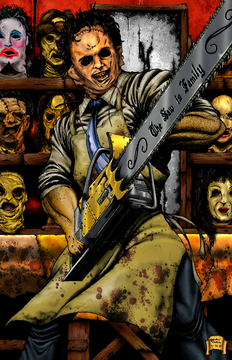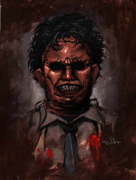 Leatherface from "The Texas Chainsaw Massacre" (1974).I got some bad news today (don't ask), felt grouchy, did this illustration, it cheered me up. I love how art works that way.