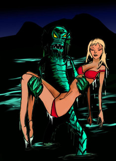 As always, you are most welcome. I love the old E.C. - Warren horror comics of the forties/fifties/sixties/etc., not to mention old horror movie posters [always with a monster or villain scaring a scantily clad woman], and your art captures those moods perfectly. Plus, your work kind of looks like Bernie Wrightson's work, but still remains original! KEEP 'EM COMIN'!