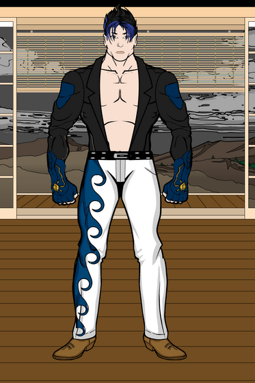 Geist is 6'3" with light blue eyes and dark brown hair. He has moderately tan skin and a muscular build. His wings appear to be based off of the design of a condor as they are black and white on the inside and don't shine any other color in the light. He has many scars: three of his face, three on his right arm, and three on the right side of his abdomen.